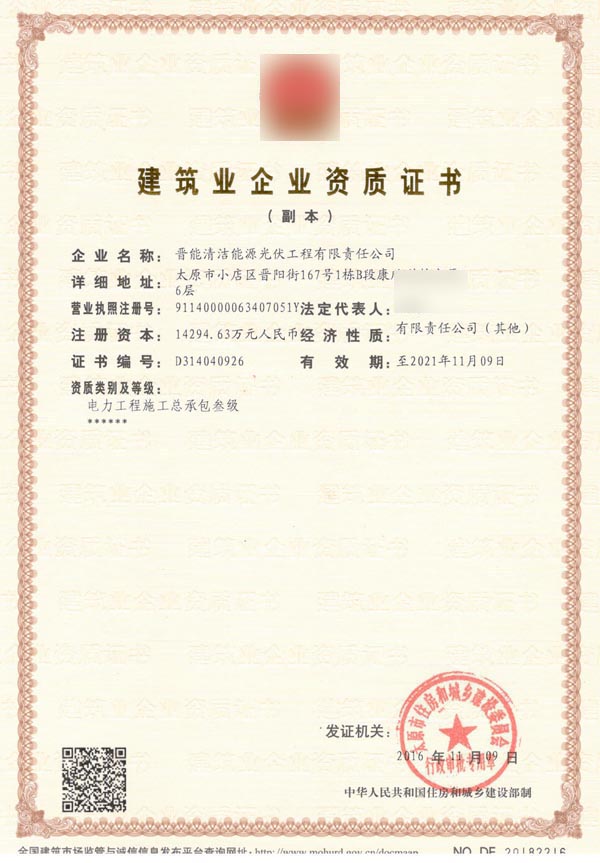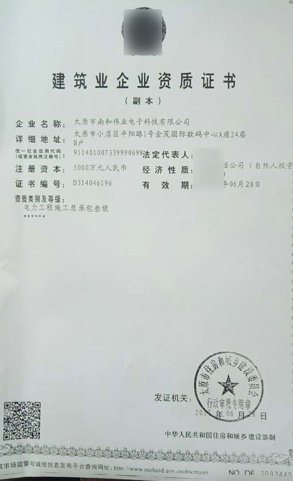 太原某公司電力施工專(zhuān)業(yè)總承包資質(zhì)
