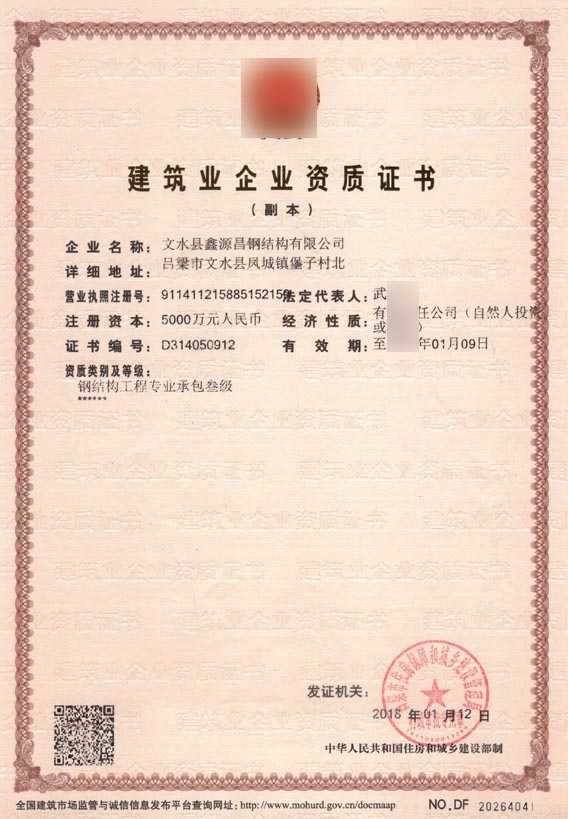 文水縣某公司鋼結(jié)構(gòu)工程專(zhuān)業(yè)承包資質(zhì)